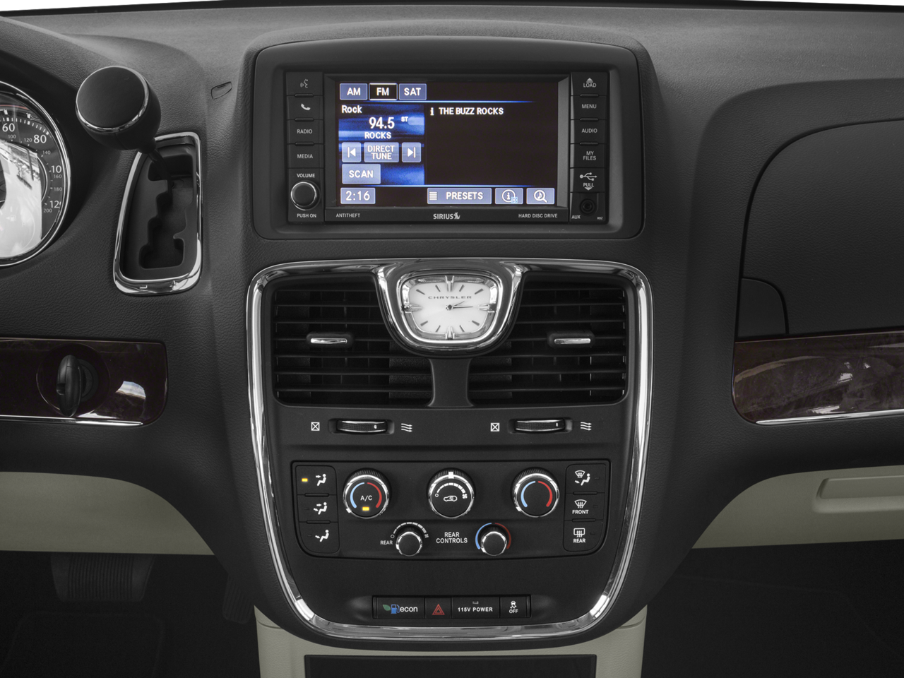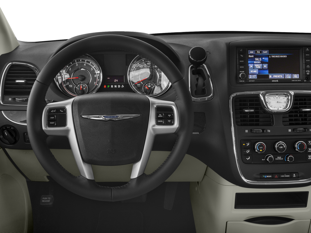 This Town & Country Touring is nicely equipped with Quick Order Package 29K, 17 x 6.5 Aluminum Wheels, 3.16 Axle Ratio, 3rd row seats: split-bench, 4-Wheel Disc Brakes, 40GB Hard Drive w/28GB Available, 6 Speakers, 6.5 Touch Screen Display, A/V remote, ABS brakes, Air Conditioning, Alloy wheels, AM/FM radio: SiriusXM, Anti-whiplash front head restraints, Audio Jack Input for Mobile Devices, Auto-dimming Rear-View mirror, Automatic temperature control, Bodyside moldings, Brake assist, Bumpers: body-color, CD player, Compass, Delay-off headlights, Driver door bin, Driver vanity mirror, Driver's Seat Mounted Armrest, Dual front impact airbags, Dual front side impact airbags, DVD-Audio, Electronic Stability Control, Entertainment system, Front anti-roll bar, Front Bucket Seats, Front dual zone A/C, Front fog lights, Front reading lights, Front wheel independent suspension, Fully automatic headlights, Garage door transmitter, Headphones, Heated door mirrors, Illuminated entry, Knee airbag, Leather Shift Knob, Leather Trimmed Bucket Seats, Low tire pressure warning, Manufacturer's Statement of Origin, MP3 decoder, Occupant sensing airbag, Outside temperature display, Overhead airbag, Overhead console, Panic alarm, ParkView Rear Back-Up Camera, Passenger door bin, Passenger seat mounted armrest, Passenger vanity mirror, Power door mirrors, Power driver seat, Power Liftgate, Power steering, Power windows, Radio data system, Radio: 430, Rear air conditioning, Rear reading lights, Rear window defroster, Rear window wiper, Reclining 3rd row seat, Remote keyless entry, Roof rack, Speed control, Split folding rear seat, Spoiler, Steering wheel mounted audio controls, Tachometer, Telescoping steering wheel, Tilt steering wheel, Touring Suspension, Traction control, Trip computer, and Variably intermittent wipers.