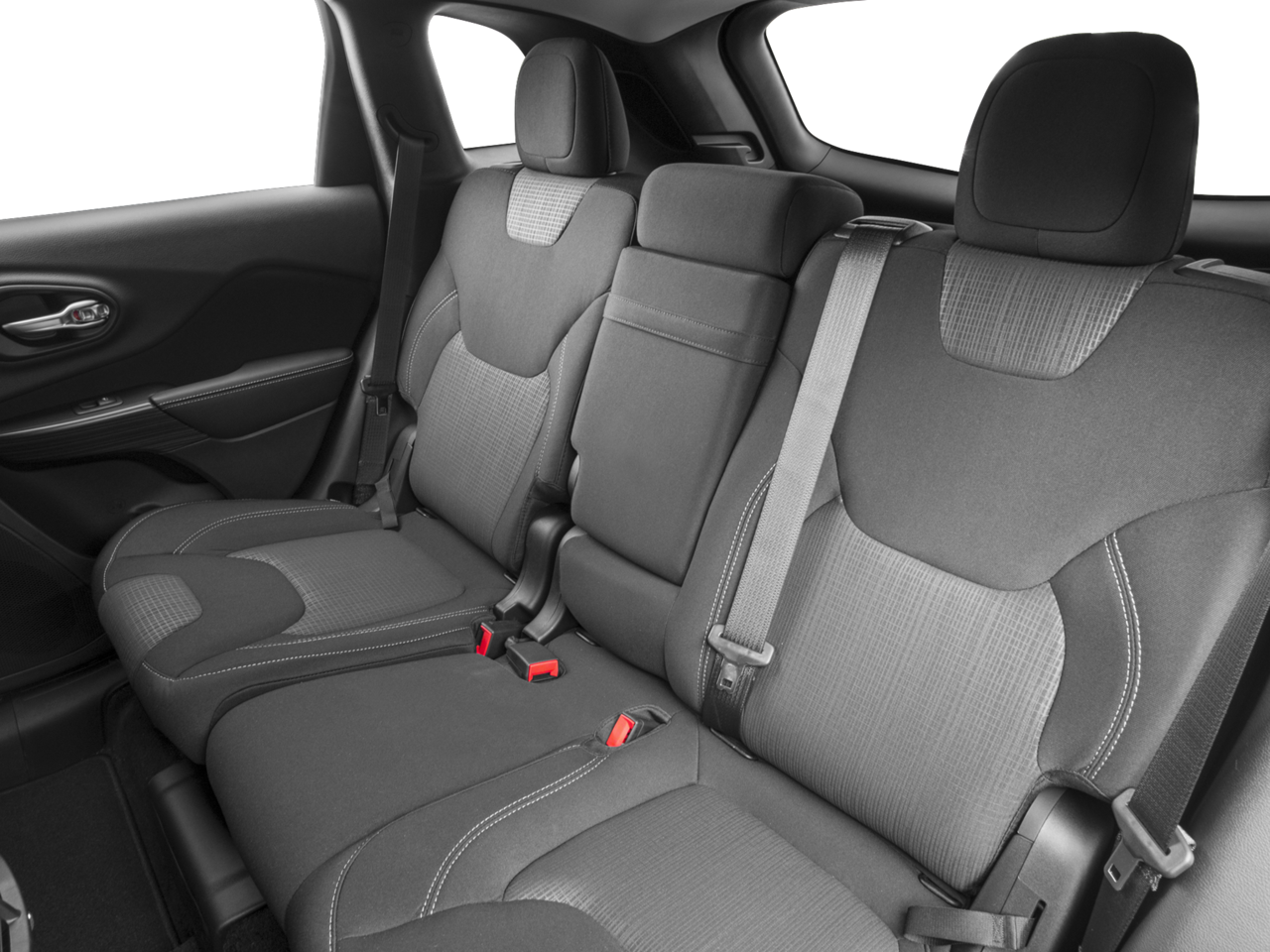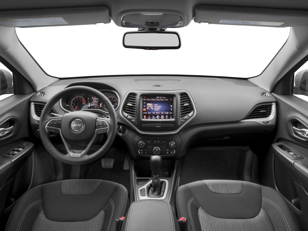 This Cherokee Latitude is nicely equipped with Quick Order Package 24J, 17 x 7 Aluminum Wheels, 3.73 Axle Ratio, 4-Wheel Disc Brakes, 6 Speakers, 600 Amp Maintenance Free Battery, ABS brakes, Active Grille Shutters, Air Conditioning, Alloy wheels, AM/FM radio, Anti-whiplash front head restraints, Auxiliary Transmission Oil Cooler, Brake assist, Bumpers: body-color, Compass, Delay-off headlights, Driver door bin, Driver vanity mirror, Dual front impact airbags, Dual front side impact airbags, Electronic Stability Control, Engine Oil Cooler, Four wheel independent suspension, Front anti-roll bar, Front Bucket Seats, Front Center Armrest, Front fog lights, Front reading lights, Fully automatic headlights, High intensity discharge headlights: Bi-Xenon, Illuminated entry, Integrated Voice Command w/Bluetooth®, Knee airbag, Low tire pressure warning, Normal Duty Suspension, Occupant sensing airbag, Outside temperature display, Overhead airbag, Overhead console, Panic alarm, ParkView Rear Back-Up Camera, Passenger door bin, Passenger vanity mirror, Power door mirrors, Power steering, Power windows, Premium Cloth Bucket Seats, Radio data system, Radio: Uconnect 3 w/5 Display, Rear anti-roll bar, Rear reading lights, Rear seat center armrest, Rear side impact airbag, Rear window defroster, Rear window wiper, Remote keyless entry, Roof rack: rails only, Speed control, Speed-sensing steering, Split folding rear seat, Spoiler, Steering wheel mounted audio controls, Tachometer, Telescoping steering wheel, Tilt steering wheel, Traction control, Trip computer, Variably intermittent wipers, and Voltmeter.