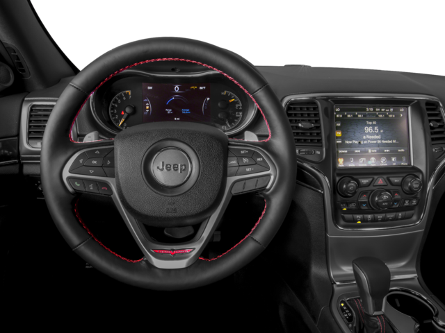 This Grand Cherokee Trailhawk is nicely equipped with Quick Order Package 23J, 1-Year SiriusXM Radio Service, 10 Speakers, 3.45 Rear Axle Ratio, 4-Wheel Disc Brakes, ABS brakes, Air Conditioning, Alloy wheels, AM/FM radio: SiriusXM, Anti-whiplash front head restraints, Audio memory, Auto-dimming door mirrors, Auto-Dimming Exterior Passenger Mirror, Auto-dimming Rear-View mirror, Auto-leveling suspension, Automatic temperature control, Blind Spot & Cross Path Detection, Brake assist, Bumpers: body-color, Compass, Delay-off headlights, Driver door bin, Driver vanity mirror, Dual front impact airbags, Dual front side impact airbags, Electronic Stability Control, Emergency communication system: Uconnect Access, Engine Oil Cooler, For Details Visit DriveUconnect.com, For More Info, Call 800-643-2112, Four wheel independent suspension, Front anti-roll bar, Front Bucket Seats, Front Center Armrest w/Storage, Front dual zone A/C, Front fog lights, Front reading lights, Fully automatic headlights, Garage door transmitter, GPS Antenna Input, Heated door mirrors, Heated front seats, Heated rear seats, Heated steering wheel, Illuminated entry, Instrument Cluster w/Off-Road Disp. Pages, Knee airbag, Leather Shift Knob, Low tire pressure warning, Memory seat, Normal Duty Suspension - Increased Travel, Occupant sensing airbag, Outside temperature display, Overhead airbag, Overhead console, Panic alarm, ParkView Rear Back-Up Camera, Passenger door bin, Passenger vanity mirror, Power door mirrors, Power driver seat, Power Liftgate, Power passenger seat, Power steering, Power windows, Radio data system, Radio: Uconnect 3C w/8.4 Display, Rear anti-roll bar, Rear reading lights, Rear seat center armrest, Rear window defroster, Rear window wiper, Remote keyless entry, Roof rack: rails only, Security system, SiriusXM Satellite Radio, Speed control, Speed-Sensitive Wipers, Split folding rear seat, Spoiler, Steering wheel mounted audio controls, Tachometer, Telescoping steering wheel, Tilt steering wheel, Traction control, Trailhawk Leather/Suede Seats, Trip computer, Turn signal indicator mirrors, Variably intermittent wipers, Ventilated front seats, and Wheels: 18 x 8.0 Off Road AluminuM.