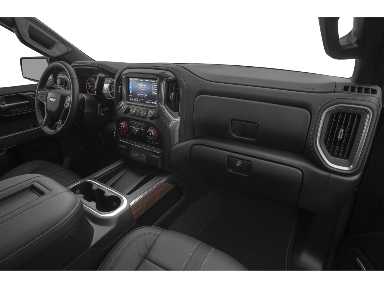 This Silverado 1500 High Country is nicely equipped with Preferred Equipment Group 3LZ (10-Way Power Driver Seat w/Lumbar, 10-Way Power Passenger Seat Adjuster w/Lumbar, 12-Volt Rear Auxiliary Power Outlet, 120-Volt Bed Mounted Power Outlet, 120-Volt Instrument Panel Power Outlet, 2nd Row Heated Outboard Seats, 4G LTE Wi-Fi Hot Spot Capable, 8 Driver Information Center, Advanced Trailering System, Auto-Dimming Inside Rear-View Mirror, Auxiliary External Transmission Oil Cooler, Bluetooth® For Phone, Chevrolet Connected Access Capable, Chevytec Spray-On Black Bedliner, Chrome Assist Steps, Chrome Grille, Chrome Recovery Hooks, Color-Keyed Carpeting Floor Covering, Compass, Deep-Tinted Glass, Driver Memory, Dual Exhaust w/Polished Outlets, Electric Rear-Window Defogger, Electrical Lock Control Steering Column, Floor Mounted Center Console, Front Carpeted Floor Mats, Front LED Fog Lamps, HD Radio, HD Rear Vision Camera, Heated Driver & Front Outboard Passenger Seats, Heated Steering Wheel, Heavy-Duty Rear Locking Differential, Hitch Guidance, Hitch Guidance w/Hitch View, Integrated Trailer Brake Controller, Keyless Open & Start, Lane Change Alert w/Side Blind Zone Alert, Leather Wrapped Steering Wheel, LED Cargo Area Lighting, Manual Tilt/Telescoping Steering Column, OnStar & Chevrolet Connected Services Capable, Outside Heated Power-Adjustable Mirrors, Painted Mirror Caps, Power Door Locks, Power Front Passenger Windows w/Express Up/Down, Power Front Windows w/Driver Express Up/Down, Power Rear Windows w/Express Down, Power Sliding Rear Window w/Rear Defogger, Rear Carpeted Floor Mats, Rear Cross Traffic Alert, Rear Dual USB Charging-Only Ports, Rear Wheelhouse Liners, Remote Vehicle Starter System, SiriusXM w/360L, Steering Wheel Audio Controls, Steering Wheel Mounted Electronic Cruise Control, Theft Deterrent System (Unauthorized Entry), Ultrasonic Front & Rear Park Assist, Universal Home Remote, Ventilated Driver & Front Passenger Seats, and Wireless Charging), Safety Package II (Adaptive Cruise Control - Camera, Automatic Emergency Braking, Following Distance Indicator, Forward Collision Alert, Front Pedestrian Braking, IntelliBeam Automatic High Beam On/Off, Lane Keep Assist w/Lane Departure Warning, and Safety Alert Seat), Technology Package (15 Diagonal Multicolor Head-Up Display, Bed View Camera, HD Surround Vision w/2 Trailer View Camera Provisions, and Rear Camera Mirror), Trailering Package, Up-Level Rear Seat w/Storage Package, Z71 Off-Road Package (High Capacity Air Filter, Hill Descent Control, and Off-Road Suspension), 170 Amps Alternator, 3.23 Rear Axle Ratio, 4-Wheel Disc Brakes, 7 Speakers, ABS brakes, Air Conditioning, Alloy wheels, AM/FM radio: SiriusXM with 360L, Apple CarPlay/Android Auto, Auto-dimming door mirrors, Auto-dimming Rear-View mirror, Automatic temperature control, Brake assist, Bumpers: body-color, Delay-off headlights, Driver door bin, Driver vanity mirror, Dual front impact airbags, Dual front side impact airbags, Electronic Stability Control, Front anti-roll bar, Front Black Bowtie Emblem (LPO), Front Bucket Seats, Front Center Armrest, Front dual zone A/C, Front fog lights, Front License Plate Kit, Front reading lights, Front wheel independent suspension, Fully automatic headlights, Garage door transmitter, Heated door mirrors, Heated front seats, Heated rear seats, Heated steering wheel, Heavy Duty Suspension, Illuminated entry, Low tire pressure warning, Memory seat, Navigation System, Occupant sensing airbag, Outside temperature display, Overhead airbag, Overhead console, Panic alarm, Passenger door bin, Passenger vanity mirror, Perforated Leather-Appointed Seat Trim, Power door mirrors, Power driver seat, Power passenger seat, Power steering, Power windows, Premium audio system: Chevrolet Infotainment 3 Premium, Radio data system, Radio: Chevrolet Infotainment 3 Premium System, Re