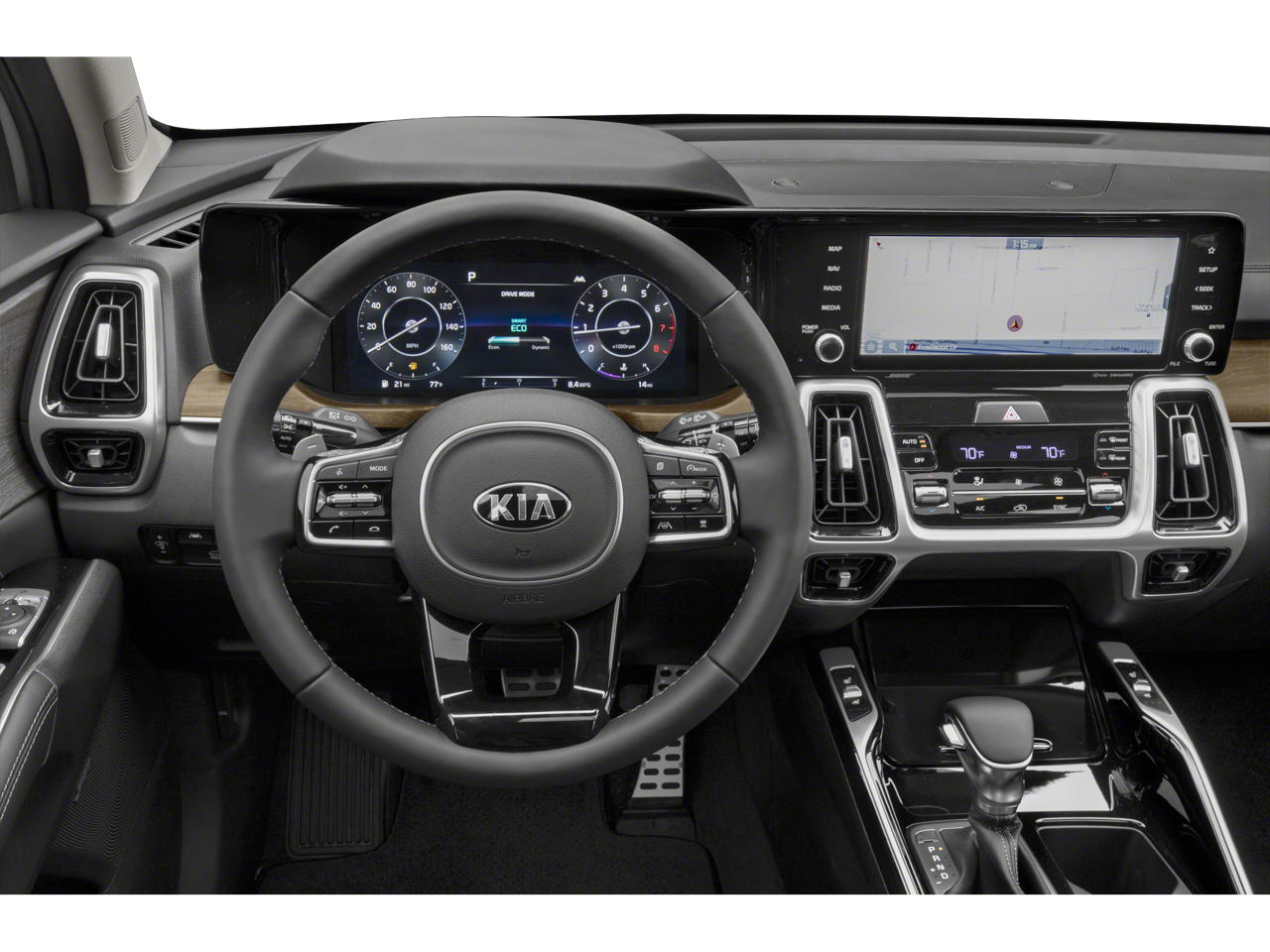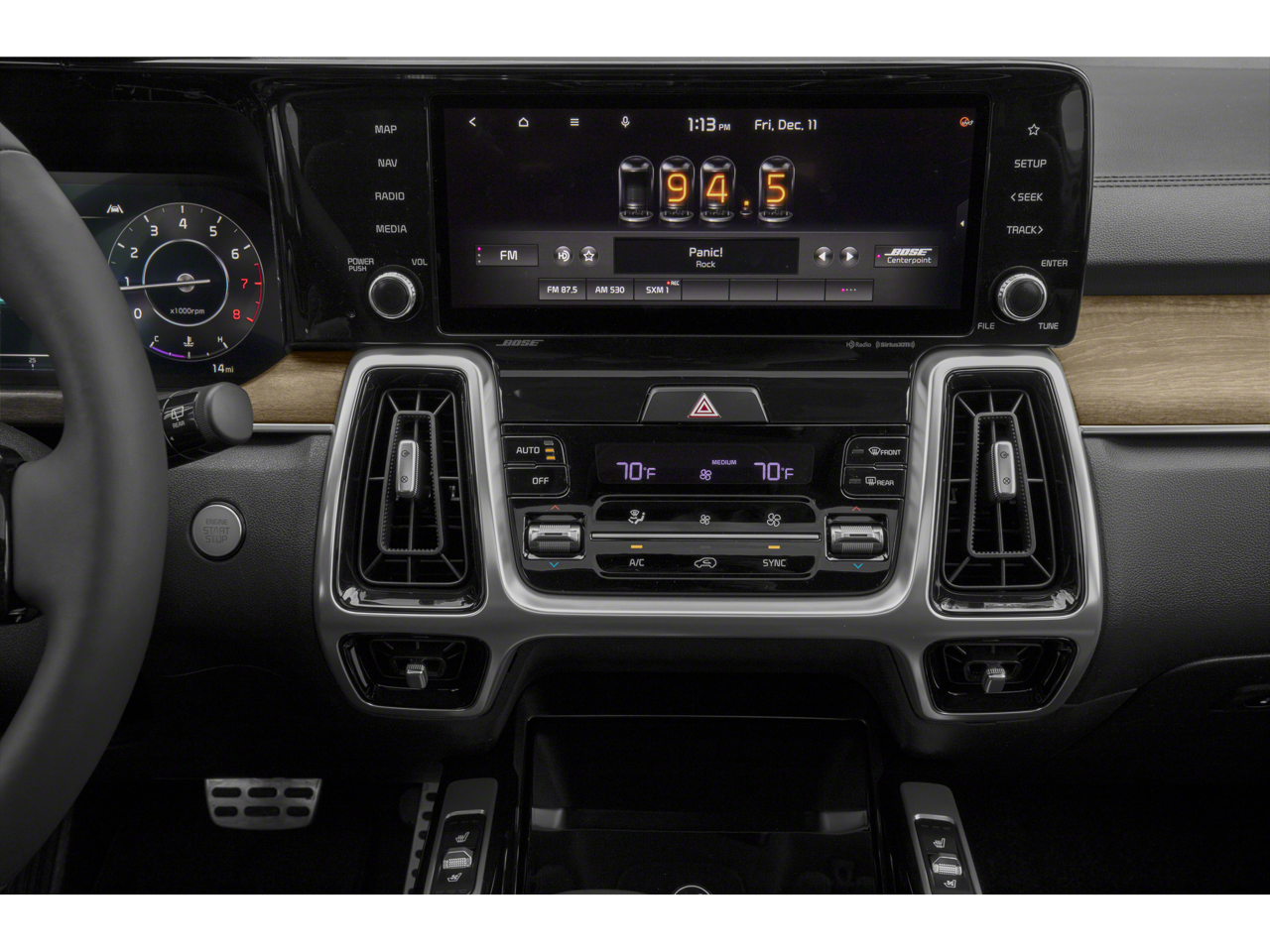 This Sorento SX Prestige X-Line is nicely equipped with X-Line SX Prestige Rust Color Package, 12 Speakers, 3.316 Axle Ratio, 3rd row seats: split-bench, 4-Wheel Disc Brakes, ABS brakes, Air Conditioning, Alloy wheels, AM/FM radio: SiriusXM, Apple CarPlay & Android Auto, Auto Dimming Mirror w/HomeLink (Plug-N-Play), Auto High-beam Headlights, Auto-dimming Rear-View mirror, Automatic temperature control, Brake assist, Bumpers: body-color, Cargo Cover, Delay-off headlights, Driver door bin, Driver vanity mirror, Dual front impact airbags, Dual front side impact airbags, Electronic Stability Control, Emergency communication system: UVO link, Four wheel independent suspension, Front anti-roll bar, Front Bucket Seats, Front Center Armrest, Front dual zone A/C, Front fog lights, Front reading lights, Fully automatic headlights, Heated & Ventilated Front Bucket Seats, Heated door mirrors, Heated front seats, Heated steering wheel, Illuminated entry, Illuminated Scuff Plates, Interior Lighting Kit, Knee airbag, Leather steering wheel, Low tire pressure warning, Mudguards, Navigation System, Occupant sensing airbag, Outside temperature display, Overhead airbag, Overhead console, Panic alarm, Passenger door bin, Passenger vanity mirror, Perforated Genuine Leather Seat Trim, Power door mirrors, Power driver seat, Power Liftgate, Power moonroof, Power passenger seat, Power steering, Power windows, Radio data system, Radio: AM/FM Premium Bose Audio System w/Nav, Rear air conditioning, Rear anti-roll bar, Rear reading lights, Rear window defroster, Rear window wiper, Remote keyless entry, Roof rack, Security system, Smart Key w/ Push Button and Remote Start, Speed control, Speed-sensing steering, Split folding rear seat, Spoiler, Steering wheel mounted audio controls, Tachometer, Telescoping steering wheel, Tilt steering wheel, Traction control, Trip computer, Turn signal indicator mirrors, Variably intermittent wipers, Ventilated front seats, and Wheels: 20 Grey Finish Alloy.