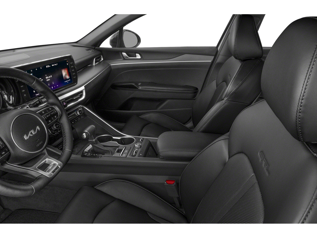 This K5 GT-Line is nicely equipped with 4-Wheel Disc Brakes, 6 Speakers, ABS brakes, Air Conditioning, Alloy wheels, AM/FM radio: SiriusXM, Apple CarPlay & Android Auto, Auto High-beam Headlights, Automatic temperature control, Brake assist, Bumpers: body-color, Cargo Tray, Carpeted Floor Mats, Cloth/SynTex Seat Trim, Delay-off headlights, Driver door bin, Driver vanity mirror, Dual front impact airbags, Dual front side impact airbags, Electronic Stability Control, Four wheel independent suspension, Front anti-roll bar, Front Bucket Seats, Front Center Armrest, Front dual zone A/C, Front fog lights, Front reading lights, Fully automatic headlights, Heated door mirrors, Illuminated entry, Knee airbag, Low tire pressure warning, Navigation System, Occupant sensing airbag, Outside temperature display, Overhead airbag, Overhead console, Panic alarm, Passenger door bin, Passenger vanity mirror, Power door mirrors, Power driver seat, Power steering, Power windows, Radio data system, Radio: AM/FM/MP3 Audio System, Rear anti-roll bar, Rear seat center armrest, Rear side impact airbag, Rear window defroster, Remote keyless entry, Security system, Speed control, Speed-sensing steering, Split folding rear seat, Spoiler, Sport steering wheel, Steering wheel mounted audio controls, Tachometer, Telescoping steering wheel, Tilt steering wheel, Traction control, Trip computer, Turn signal indicator mirrors, Variably intermittent wipers, and Wheels: 18 Gloss Black Machined Finish Alloy.