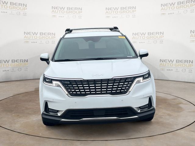 This Carnival SX is nicely equipped with 3.51 Axle Ratio, 3rd row seats: split-bench, 4-Wheel Disc Brakes, ABS brakes, Air Conditioning, Alloy wheels, AM/FM radio: SiriusXM, Apple CarPlay & Android Auto, Auto High-beam Headlights, Automatic temperature control, Brake assist, Bumpers: body-color, Cargo Tray, Carpeted Floor Mats (8-Passenger), Compass, Cross Bars, Delay-off headlights, Driver door bin, Driver vanity mirror, Dual front impact airbags, Dual front side impact airbags, Electronic Stability Control, Emergency communication system, Exterior Parking Camera Rear, Four wheel independent suspension, Front anti-roll bar, Front Bucket Seats, Front Center Armrest, Front dual zone A/C, Front fog lights, Front reading lights, Fully automatic headlights, Heated & Ventilated Front Bucket Seats, Heated door mirrors, Heated front seats, Illuminated entry, Knee airbag, Leather Shift Knob, Leather steering wheel, Low tire pressure warning, Memory seat, Navigation System, Occupant sensing airbag, Outside temperature display, Overhead airbag, Overhead console, Panic alarm, Passenger door bin, Passenger vanity mirror, Power door mirrors, Power driver seat, Power Liftgate, Power passenger seat, Power steering, Power windows, Radio: AM/FM/HD Audio System, Rear air conditioning, Rear anti-roll bar, Rear reading lights, Rear window defroster, Rear window wiper, Reclining 3rd row seat, Remote keyless entry, Roof rack: rails only, Security system, Speed control, Speed-sensing steering, Split folding rear seat, Spoiler, Steering wheel mounted audio controls, Tachometer, Telescoping steering wheel, Tilt steering wheel, Traction control, Trip computer, Turn signal indicator mirrors, Variably intermittent wipers, Ventilated front seats, and Wheels: 7.5J x 19 Black Painted Alloy.
