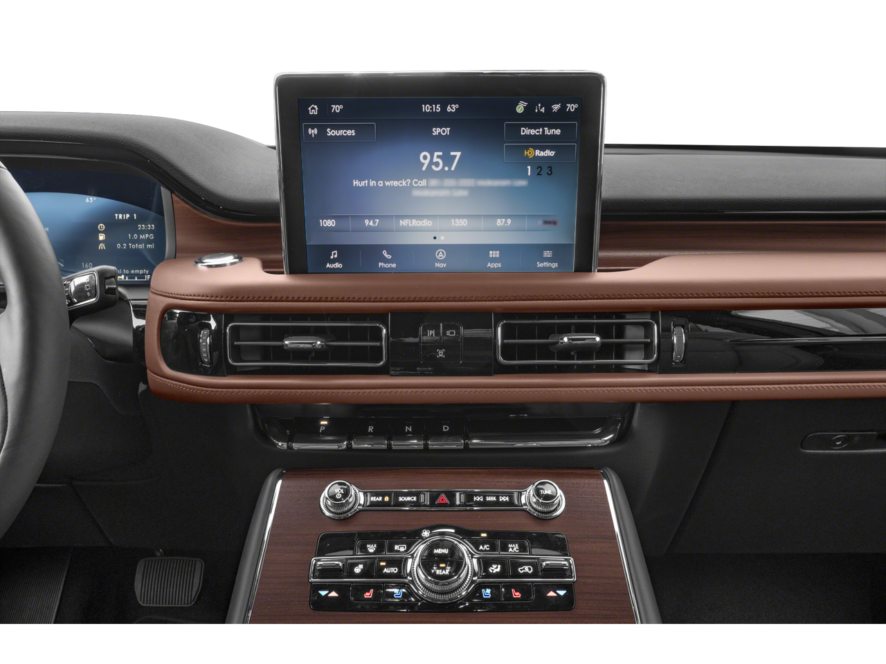 This Aviator Reserve is nicely equipped with Elements Package Plus (Auto Air Refresh, Auto Heated/Ventilated Driver & Passenger Seats, Heated Steering Wheel, Heated VisioBlade Wipers, and Heated/Ventilated 2nd Row Outboard Seats), Equipment Group 201A (Phone As A Key), Lincoln Co-Pilot360 1.5 Plus (Active Park Assist 2.0, Evasive Steering Assist, Intelligent Adaptive Cruise Control, and Reverse Brake Assist), 14 Speakers, 3.58 Axle Ratio, 3rd row seats: split-bench, 4-Wheel Disc Brakes, ABS brakes, Adaptive suspension, Air Conditioning, All-Weather 1st & 2nd Row Floor Liners (16A), Alloy wheels, AM/FM radio: SiriusXM, Audio memory, Auto High-beam Headlights, Auto-dimming door mirrors, Auto-dimming Rear-View mirror, Automatic temperature control, Brake assist, Bumpers: body-color, Compass, Delay-off headlights, Driver door bin, Driver vanity mirror, Dual front impact airbags, Dual front side impact airbags, Electronic Stability Control, Emergency communication system, Four wheel independent suspension, Front anti-roll bar, Front Bucket Seats, Front Center Armrest, Front dual zone A/C, Front reading lights, Full Rear Console, Fully automatic headlights, Garage door transmitter, Heated door mirrors, Heated front seats, HVAC memory, Illuminated entry, Knee airbag, Lane Departure Warning System, Leather steering wheel, Low tire pressure warning, Memory seat, Navigation System, Occupant sensing airbag, Outside temperature display, Overhead airbag, Overhead console, Panic alarm, Passenger door bin, Passenger vanity mirror, Power door mirrors, Power driver seat, Power Liftgate, Power moonroof: Panoramic Vista Roof, Power passenger seat, Power steering, Power windows, Premium Lthr Heated/Ventilated Fnt Captain's Chairs, Radio data system, Radio: Revel AM/FM Audio System w/14 Speakers, Rain sensing wipers, Rear air conditioning, Rear anti-roll bar, Rear audio controls, Rear dual zone A/C, Rear reading lights, Rear window defroster, Rear window wiper, Remote keyless entry, Security system, SiriusXM Radio, Speed control, Speed-Sensitive Wipers, Split folding rear seat, Spoiler, Steering wheel memory, Steering wheel mounted A/C controls, Steering wheel mounted audio controls, SYNC 3 Communication & Entertainment System, Tachometer, Telescoping steering wheel, Tilt steering wheel, Traction control, Trip computer, Turn signal indicator mirrors, Variably intermittent wipers, and Wheels: 20 Bright-Machined Aluminum.